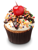 Cupcake de chocolate negro, cubierto con crema de caramelo salado, coco tostados y topping de caramelo y chocolate.